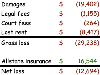 Needless to say, she was pissed off. Imagine, all of her personal items (and her family) were forcibly removed from the premises. Yes, she didn’t pay rent for months, but even then, the image of all of her items scattered across the driveway in the pouring rain is an image I remember vividly. But this wasn’t the end. She called me and threatened boldly, “I’m going to get you back. Just watch.” I immediately increased security measures (notified authorities, upgraded locks, installed cameras, etc).