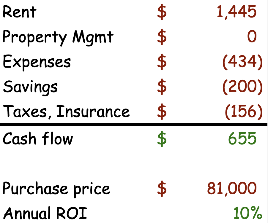 Since I was self-managing at the time, I was making an extra $145 per month (stay tuned for a future post on self-managing versus hiring a property manager). This deal felt solid - so I decided to pursue it. After all, this ROI didn’t even include the appreciation and tax benefits I would be reaping. Let’s do this!