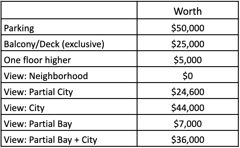 I find this riveting. Would you pay $25K for a private balcony? Or, pay $44K to have a city skyline view? I know, it’s the ideal dinner conversation. Next time you see me, let’s nerd out about it!